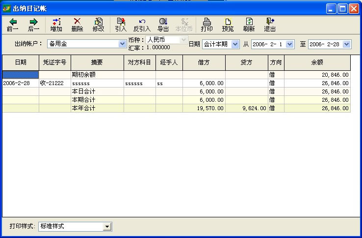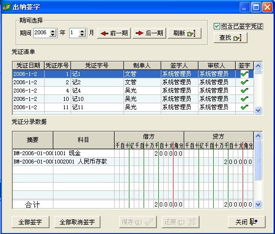 出纳结账