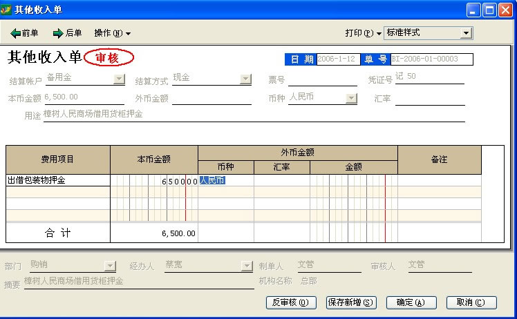 费用开支 银行存取款 其他收入