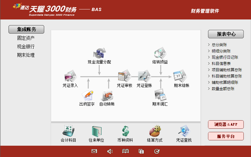 《速达天耀3000财务-Bas》完全符合国家现行会计制度标准。功能强大、易学易用。产品集财务管理、现金银行、固定资产管理、自定义报表于一体。特别适合中小企业使用。